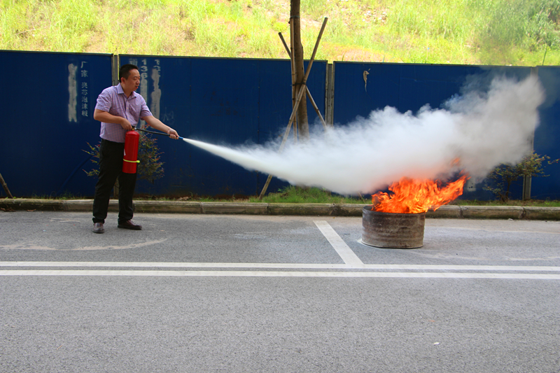 部分員工進(jìn)行滅火器使用實(shí)操