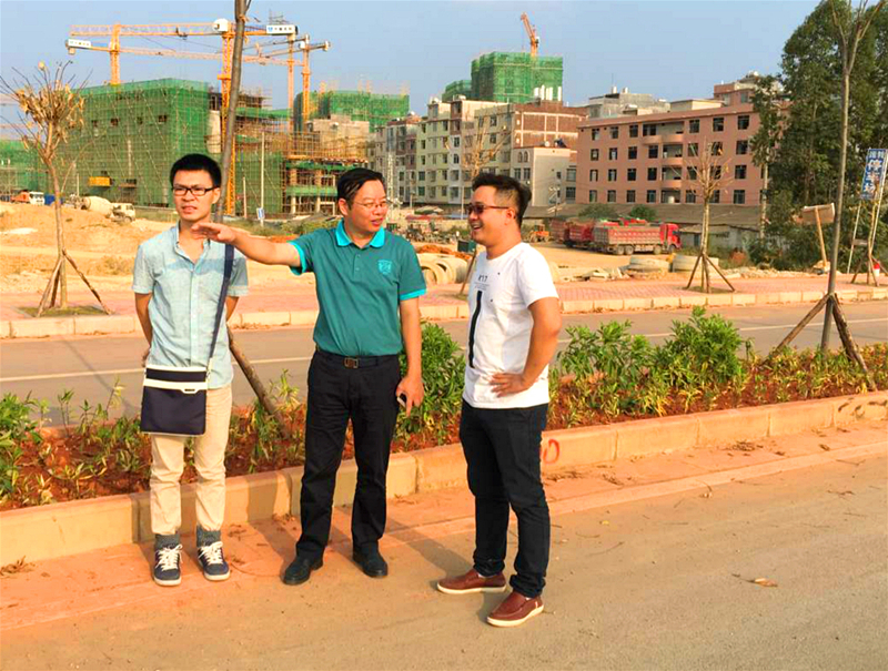 榮鑫公司總經(jīng)理李汝埠到光明路綠化項(xiàng)目檢查(梁付臻)
