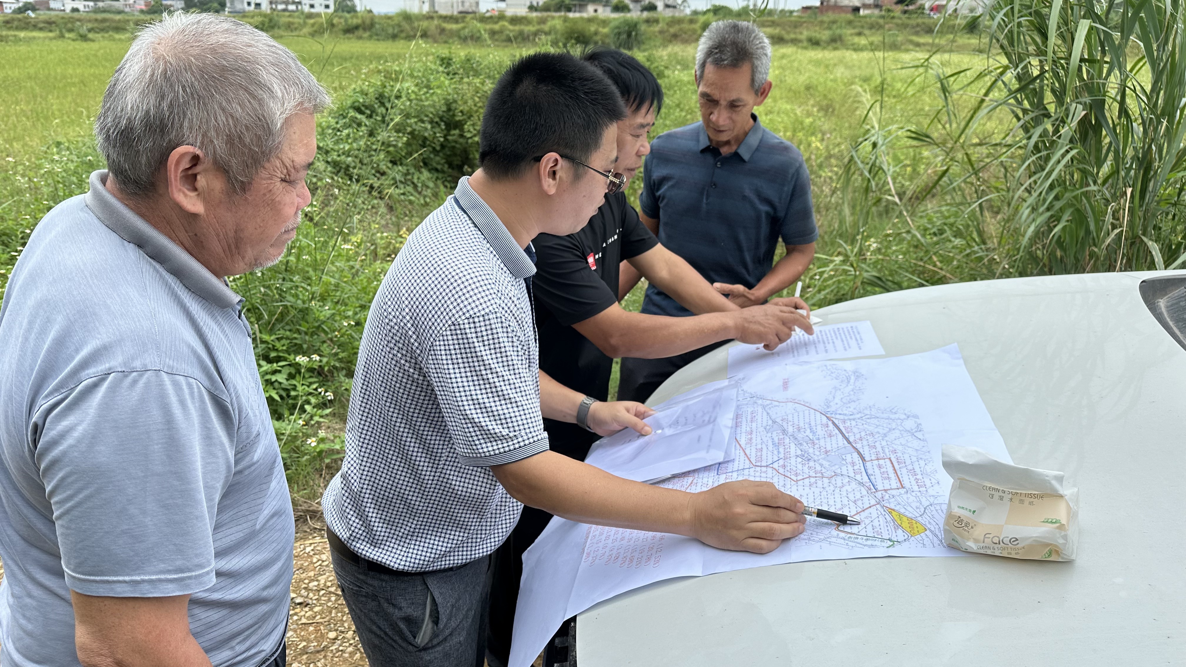 吳圩鎮(zhèn)平垌村旱改水項目分田到戶工作第一階段也是最關(guān)鍵的階段,是將經(jīng)過旱改水改造后的土地合理地分配至各生產(chǎn)隊,地塊的遠(yuǎn)近、土質(zhì)的肥瘦、水源的豐缺等條件需要在分配時充分進(jìn)行考慮,如何科學(xué)、合理、精準(zhǔn)地實現(xiàn)土地分配,最大限度照顧各方利益,需要大量的實地溝通與協(xié)調(diào)。科巨公司結(jié)合以往旱改水田地分配經(jīng)驗,緊鑼密鼓地開展分地工作。